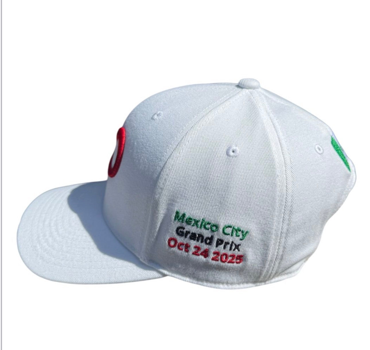 *2025 Edición Limitada Tricolor* Formula 1 Gorra Negra Tipo Curva con logo PO 3D Verde/Rojo al frente & #89 Verde/Rojo y fecha de la FP1 en CDMX en los lados. Bandera de Mexico en la parte trasera de la gorra.