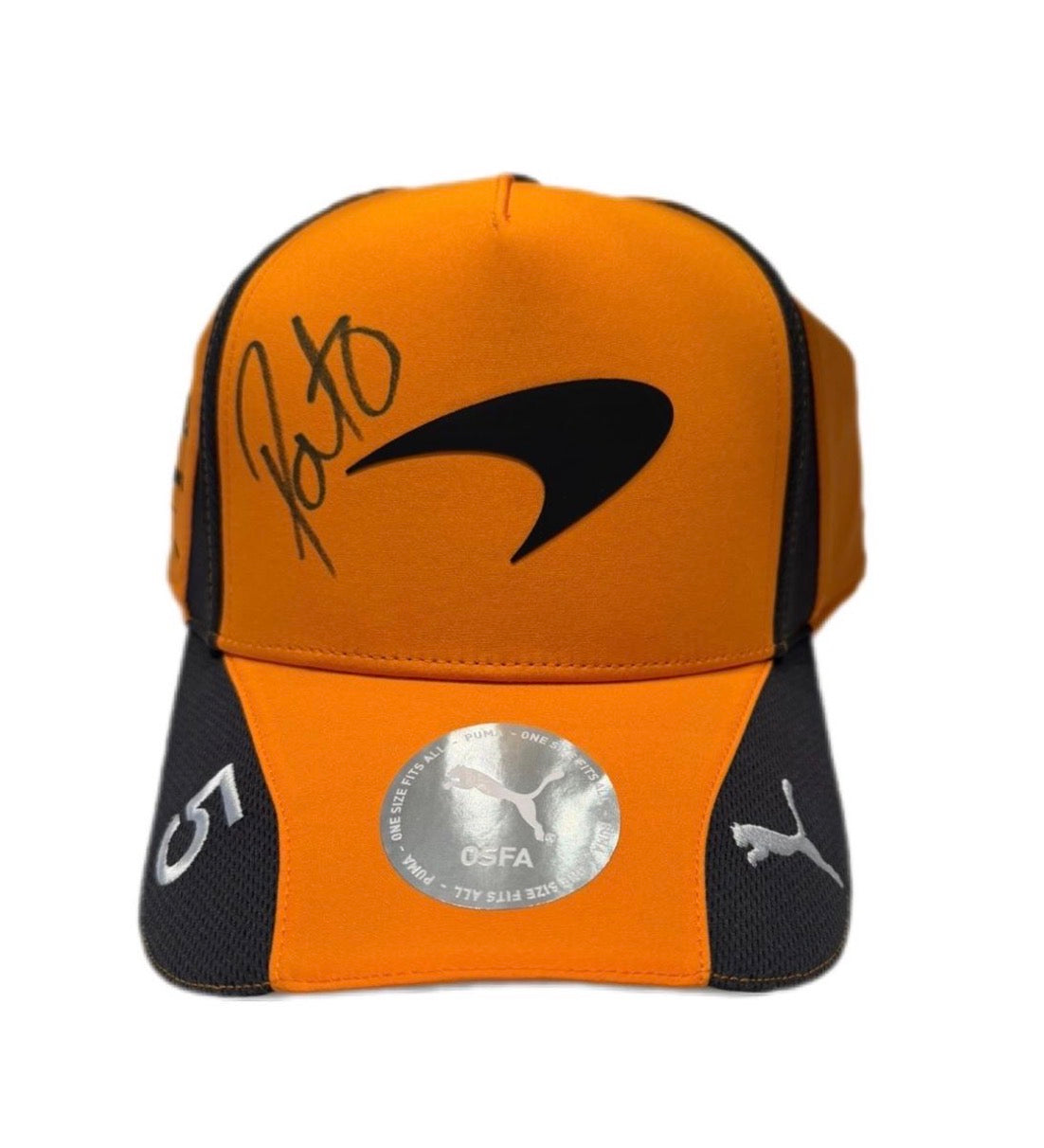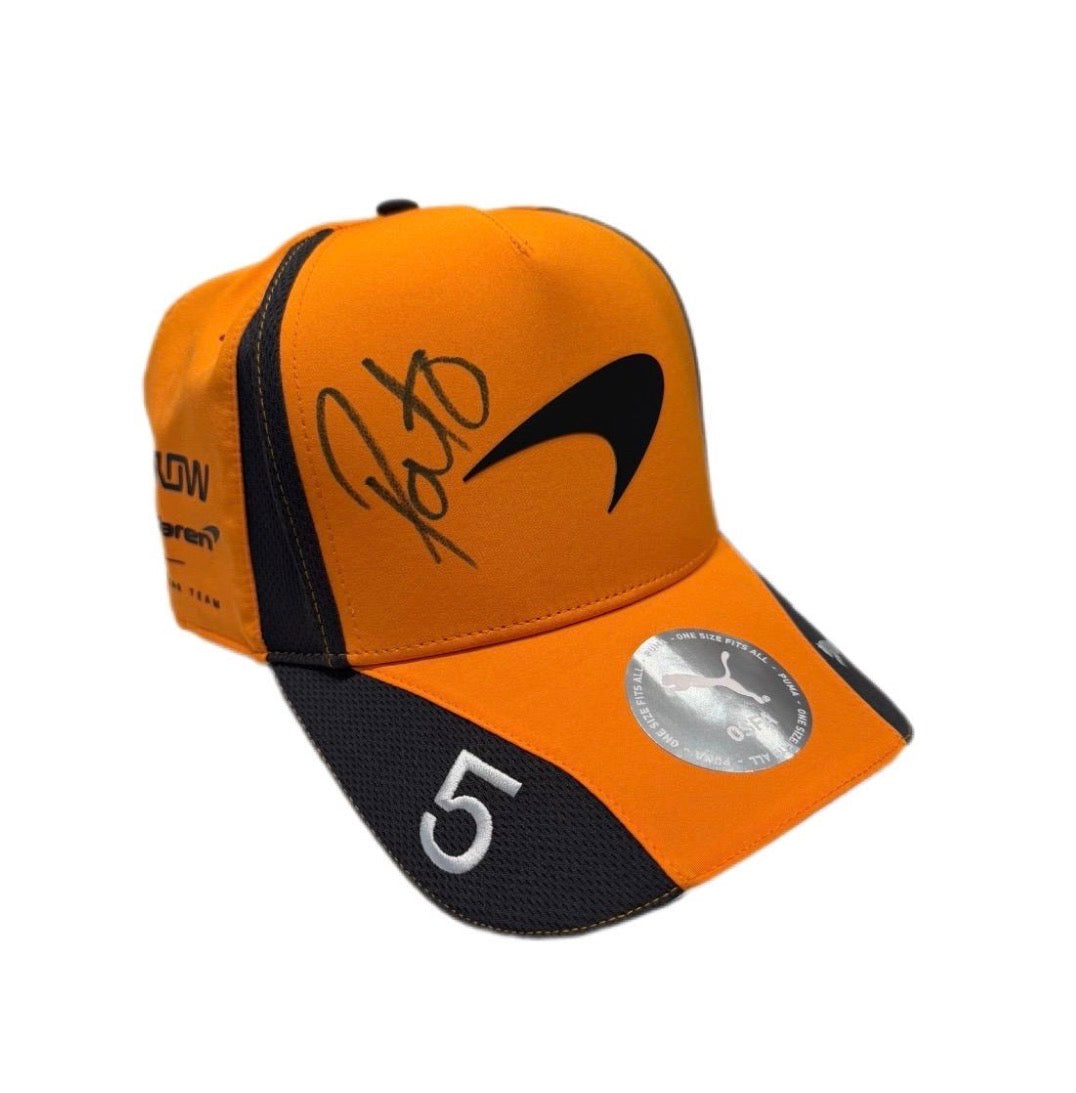 *Autografiada* 2026 Gorra Naranja Tipo Curva McLaren y logo PO Blanco bajo la visera